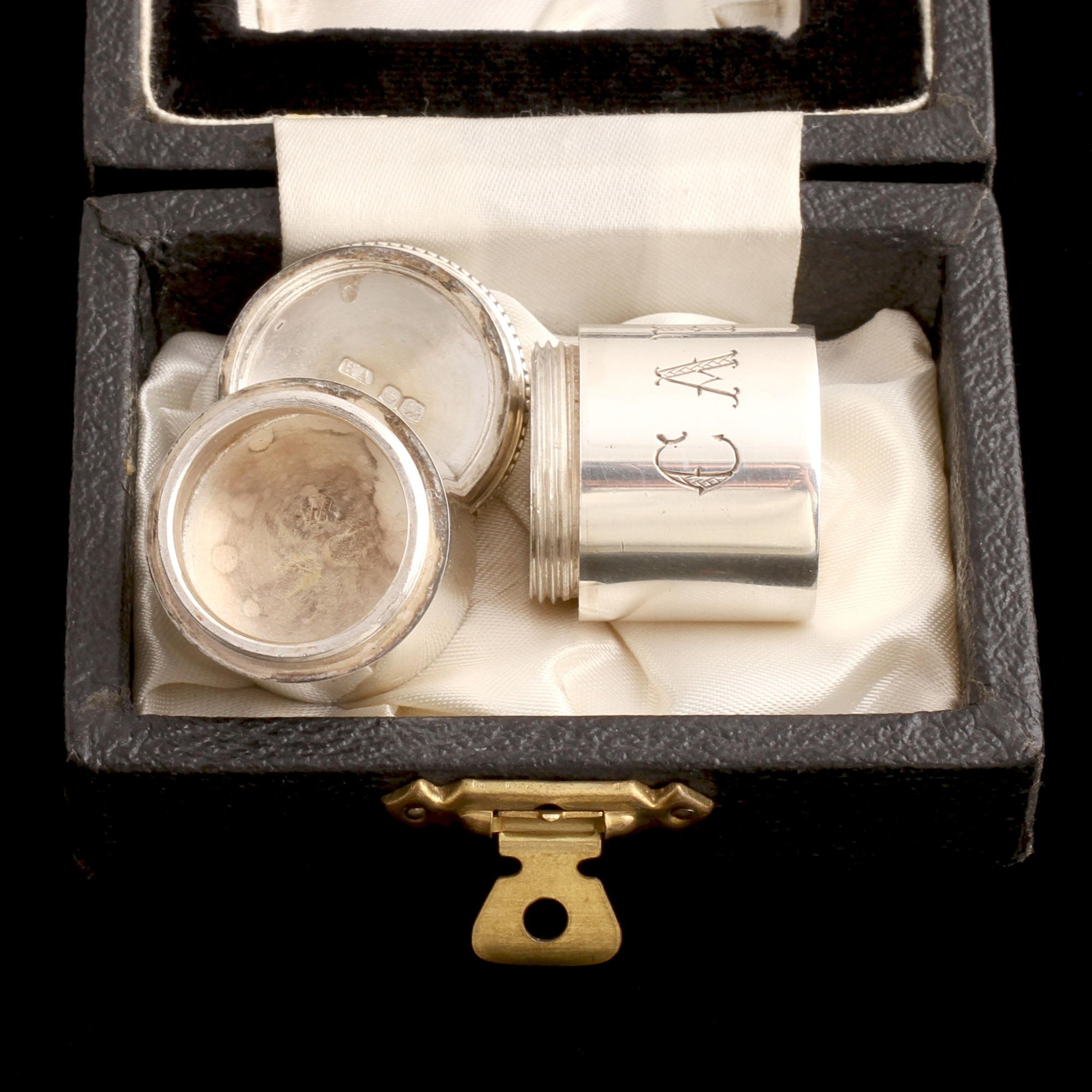 sterling silver, satin and velvet lined leatherette fitted box