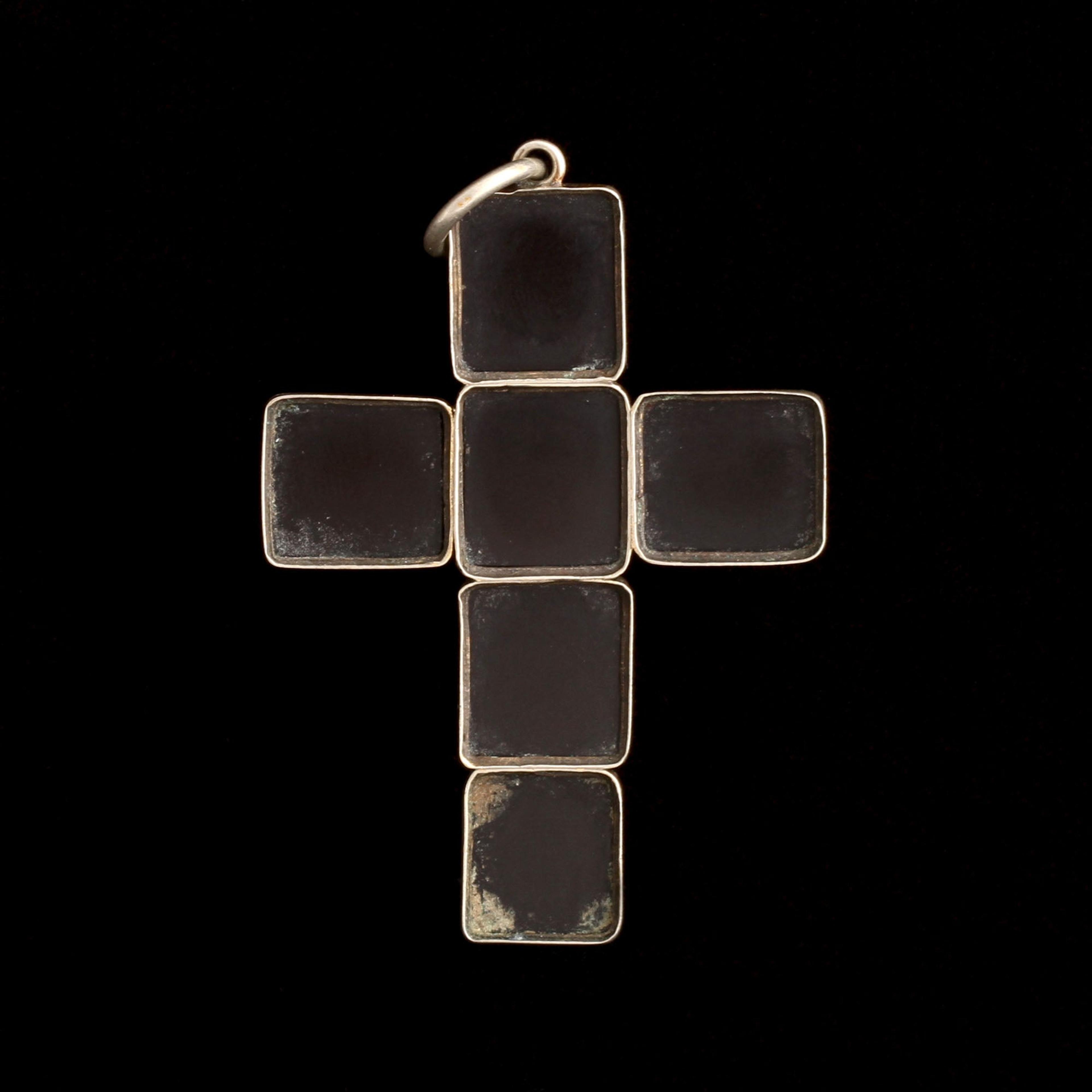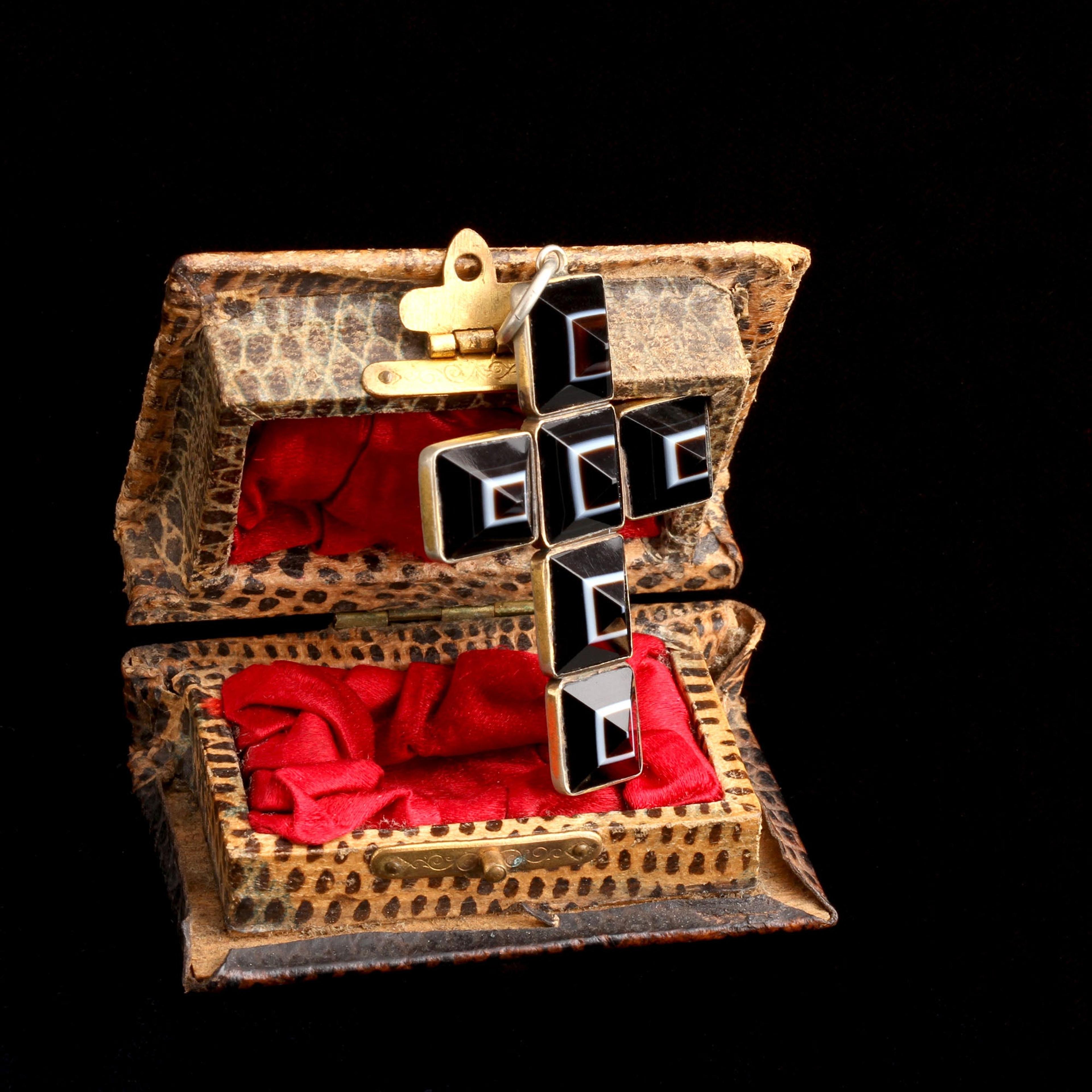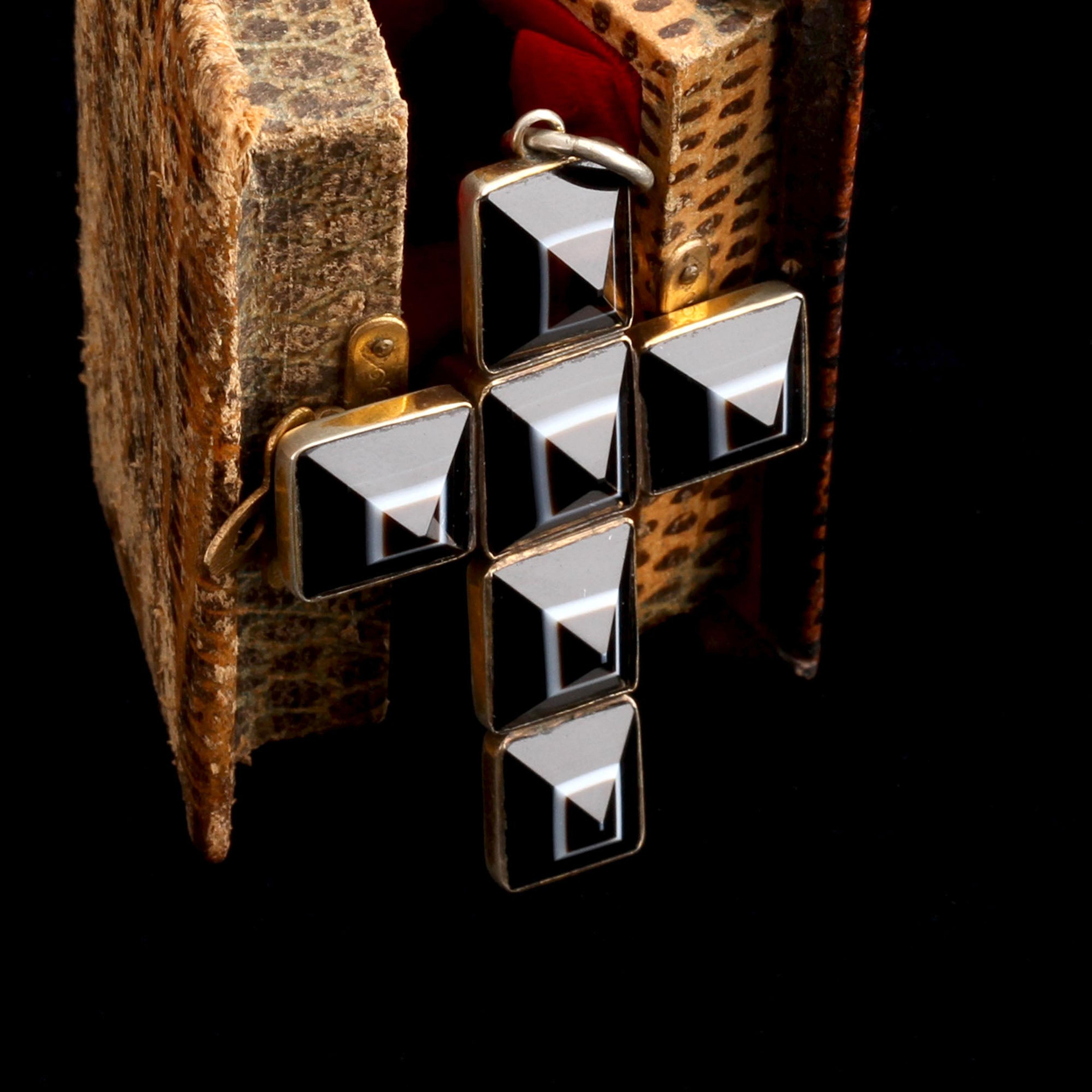 An XL cross made of pyramid-cut banded agate cabochons in gilt silver is making my goth heart beat faster. Slight variations in the stones and the cuts give it an oversized personality.