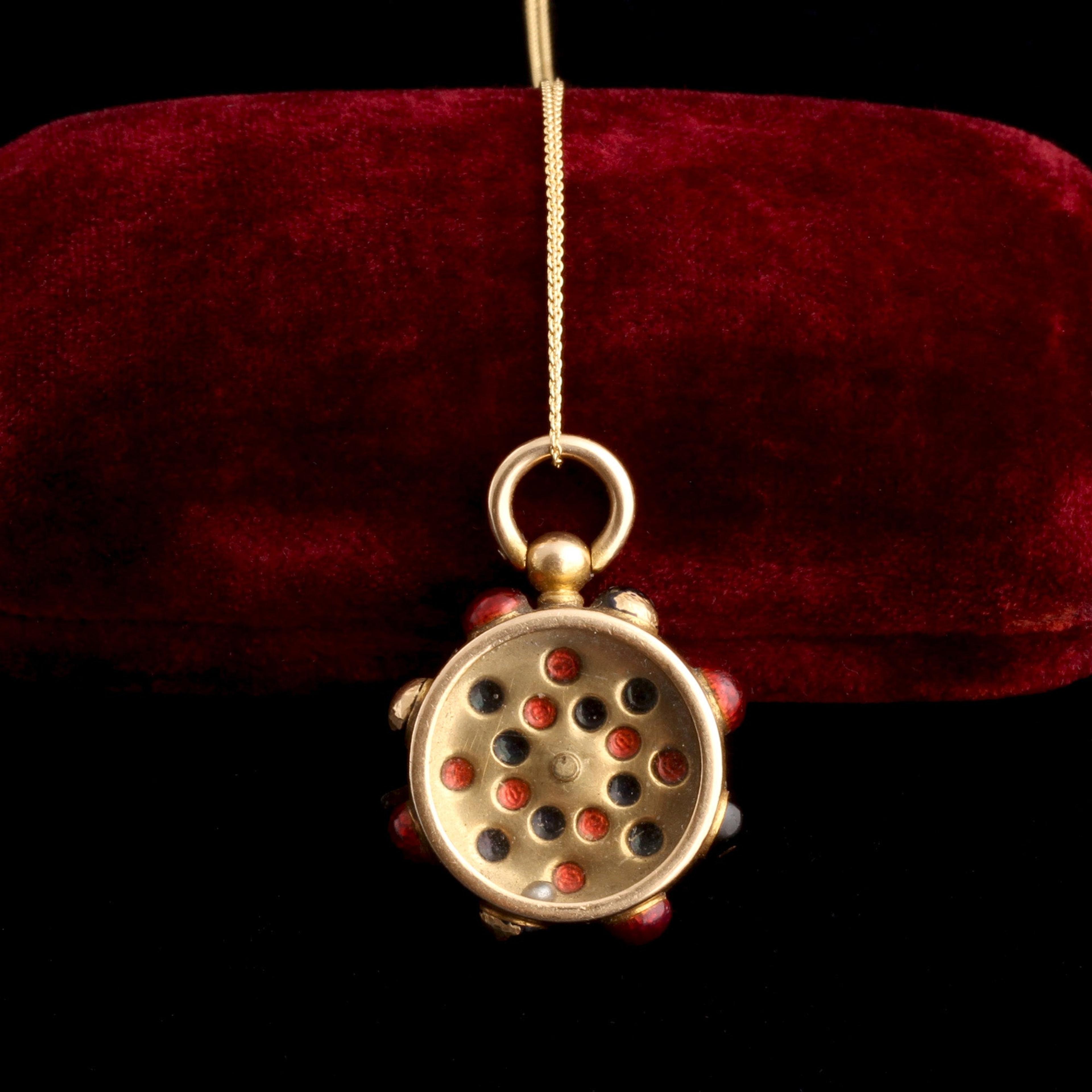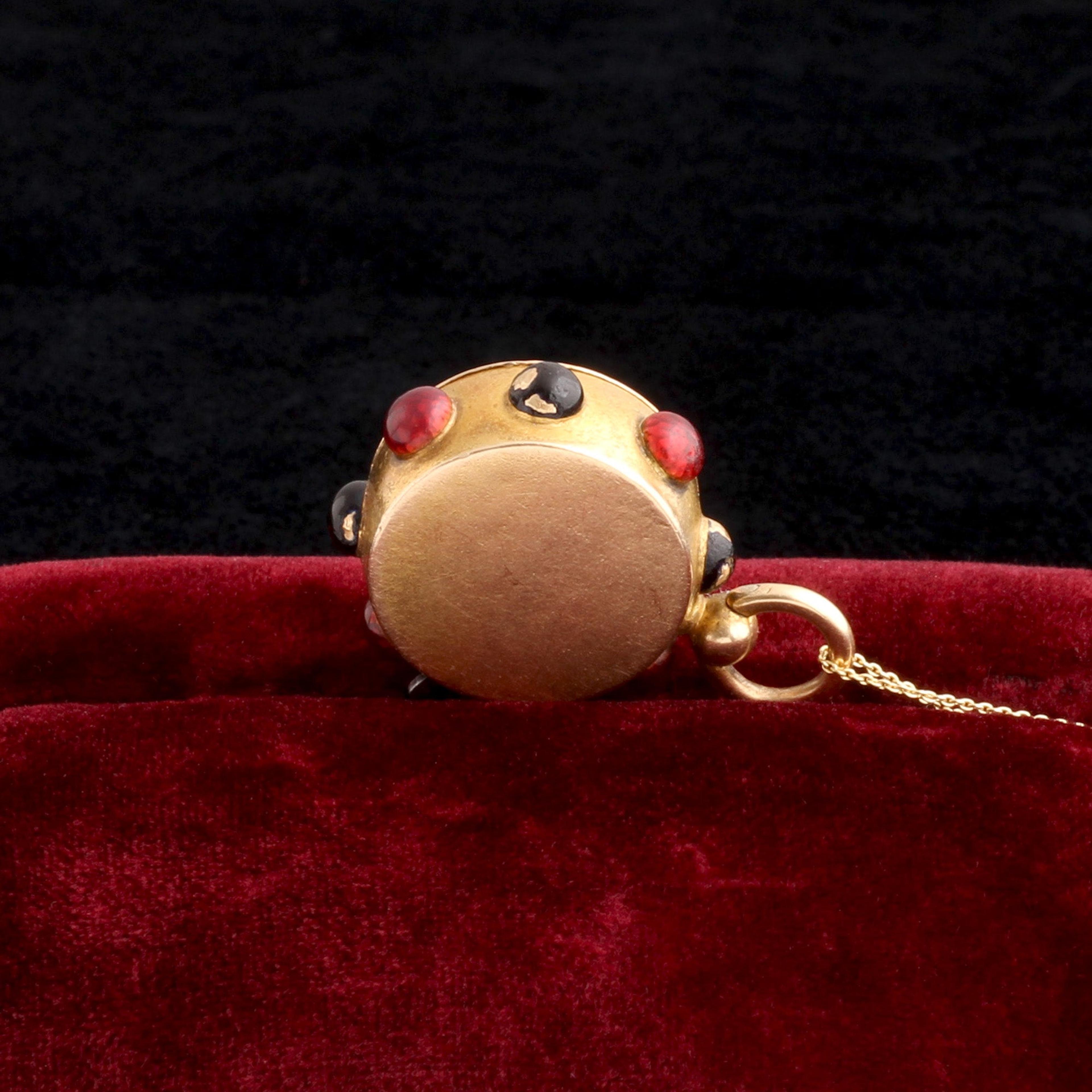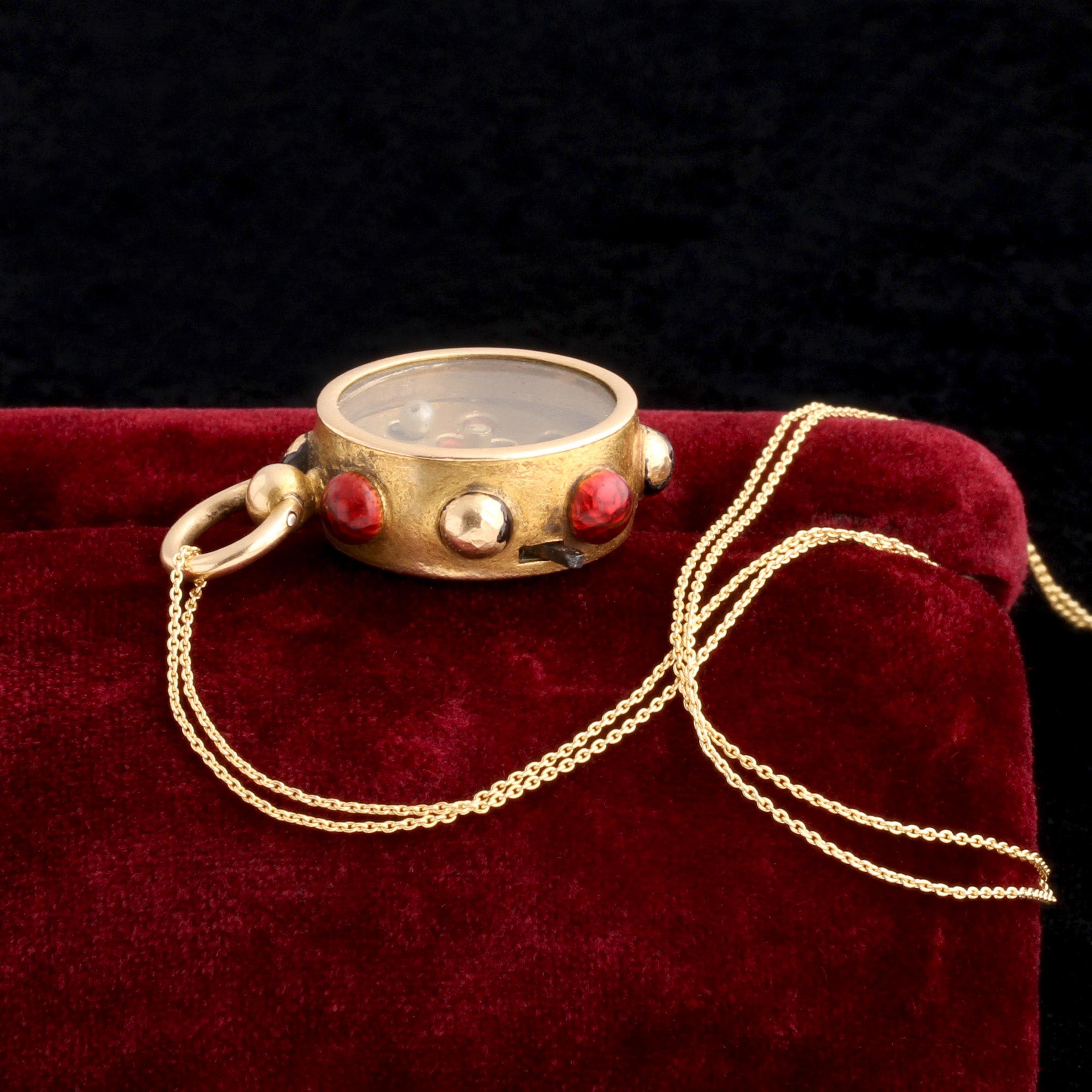 14k gold (tests), red & black enamel, glass, new 14k gold chain