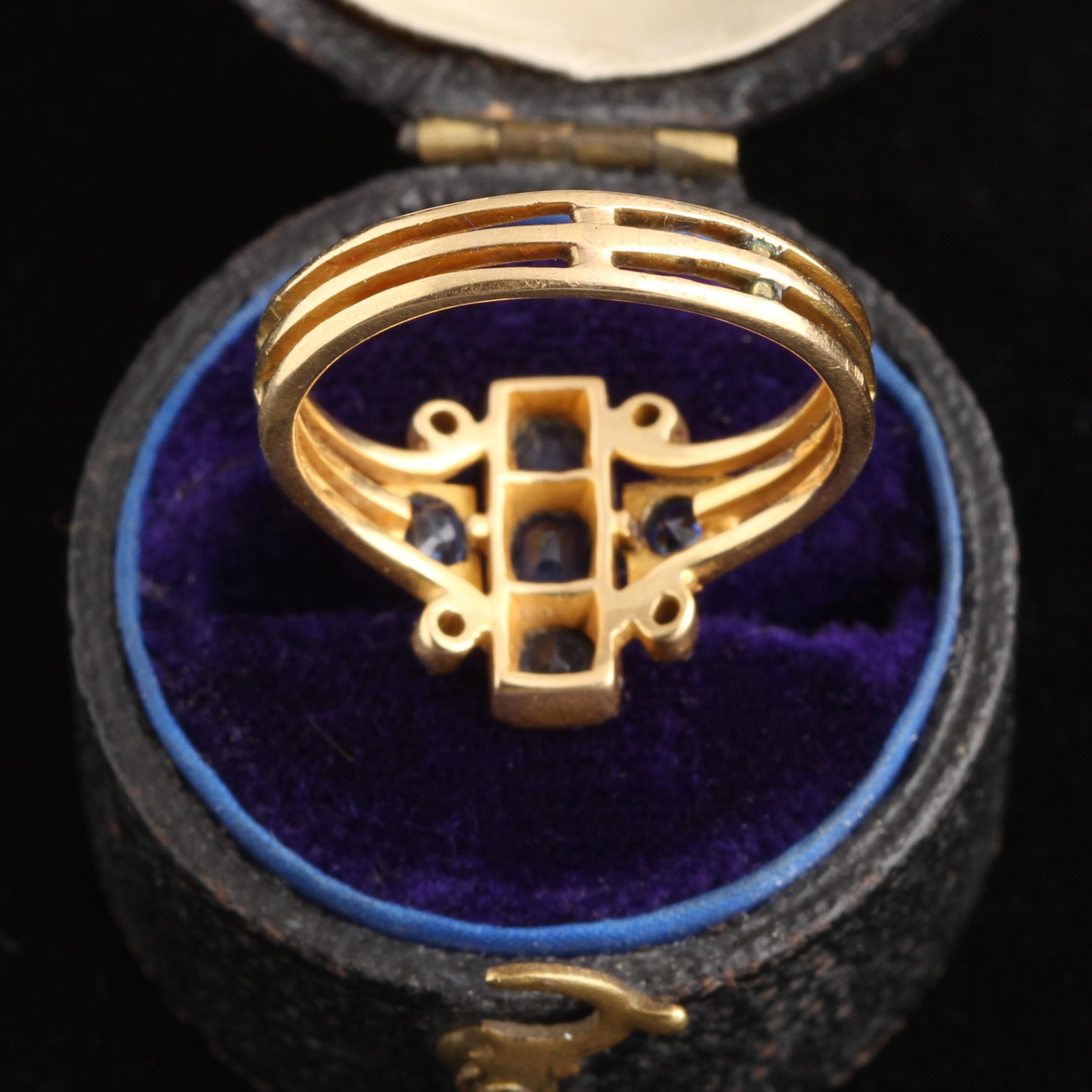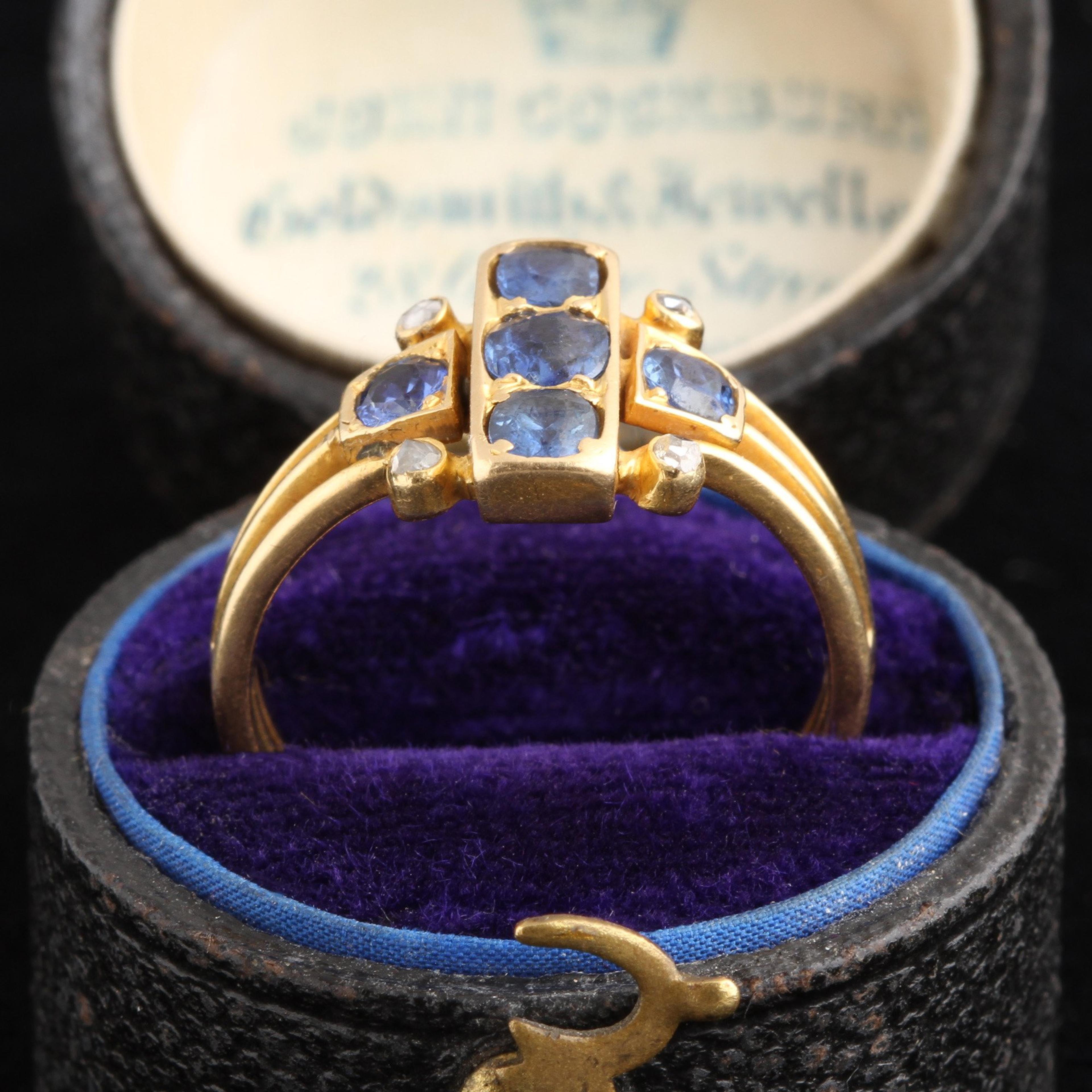 Maximalism meets minimalism, this Victorian ring features a bold cruciform arrangement of sapphires accented with rose cut diamonds.