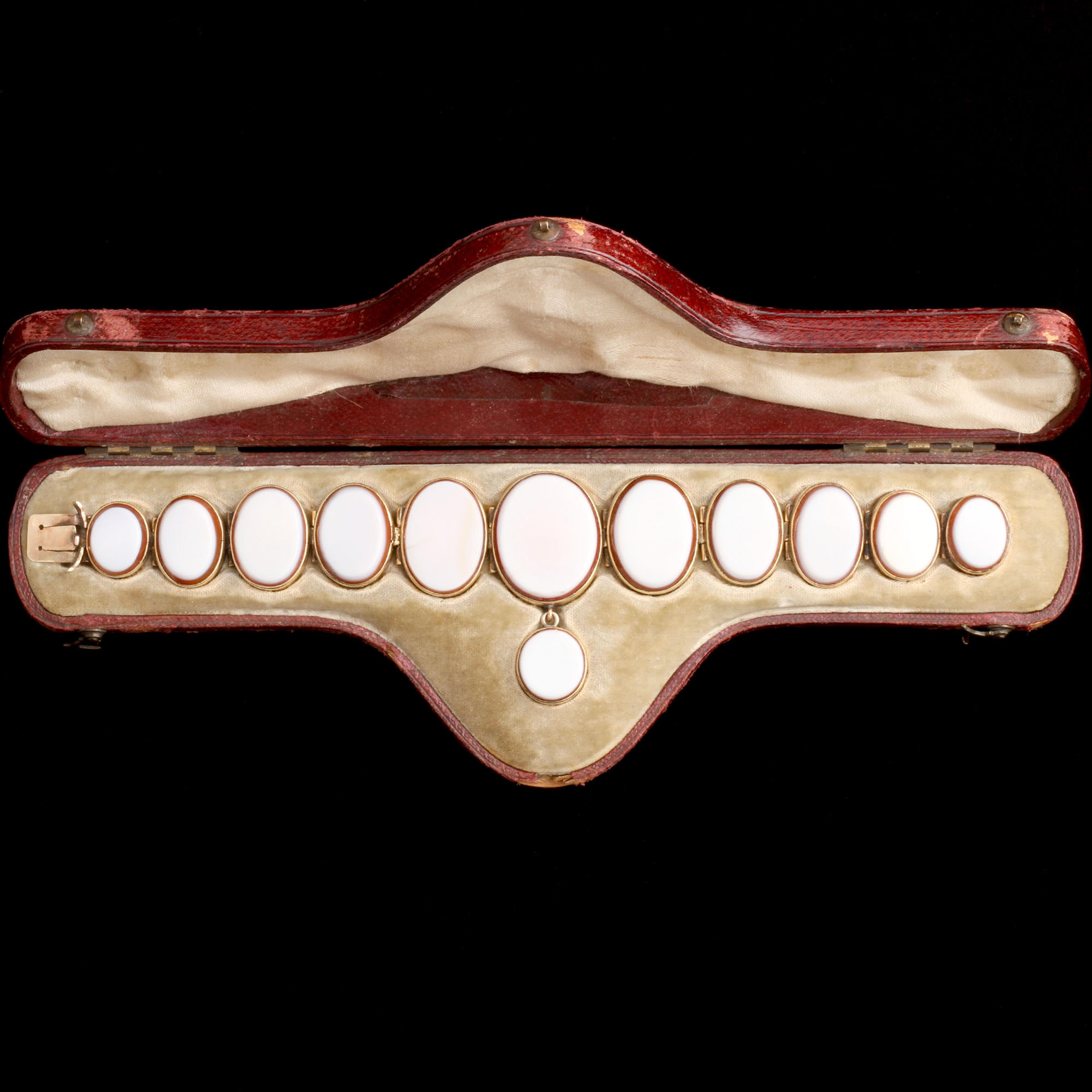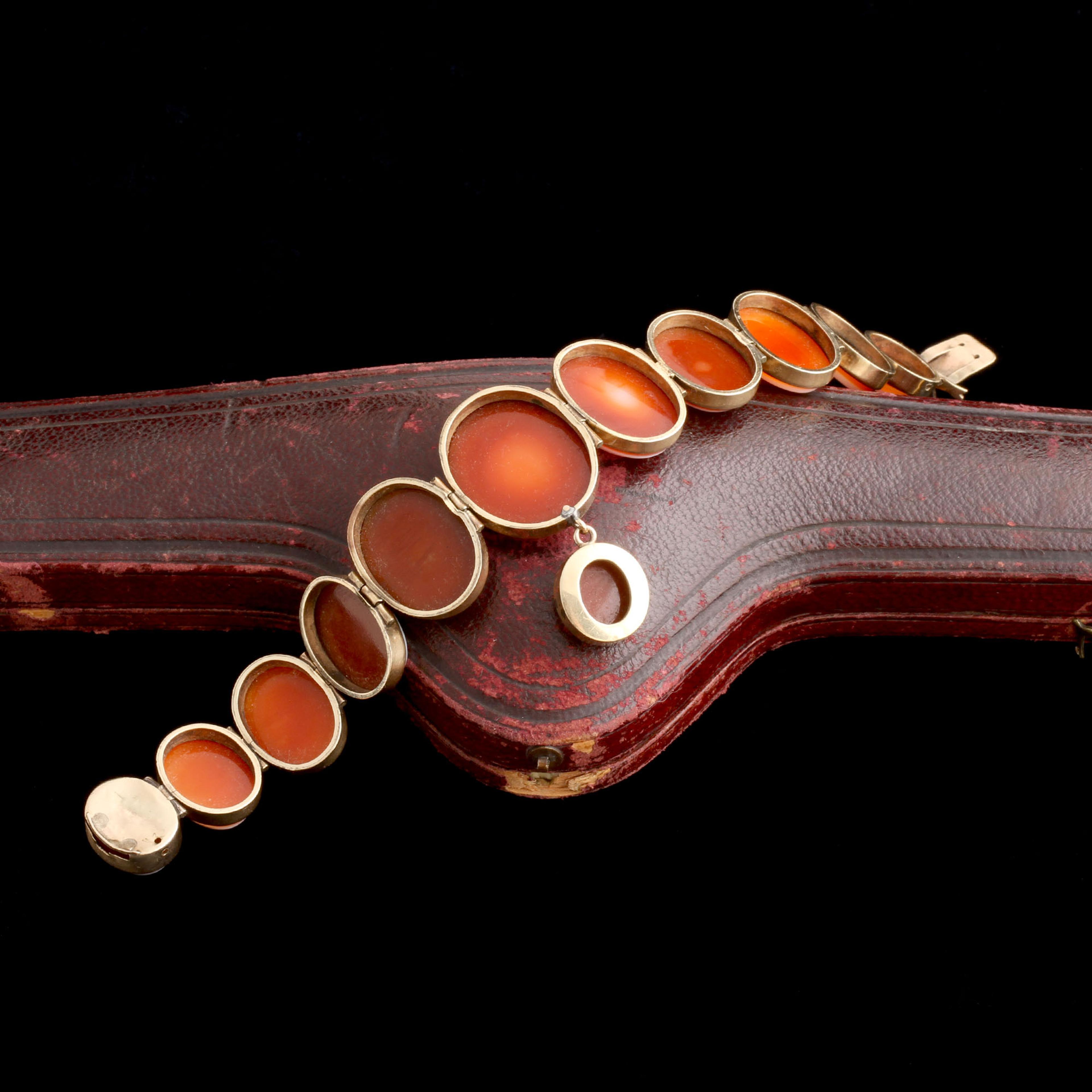 I loved this bracelet when I first found it lying in its original leather box from the 1870s. But when I picked it up and got a glimpse of the deep red backs of the sardonyx ovals? That's when I knew I had found a real treasure. The crimson feels like a secret on your wrist.