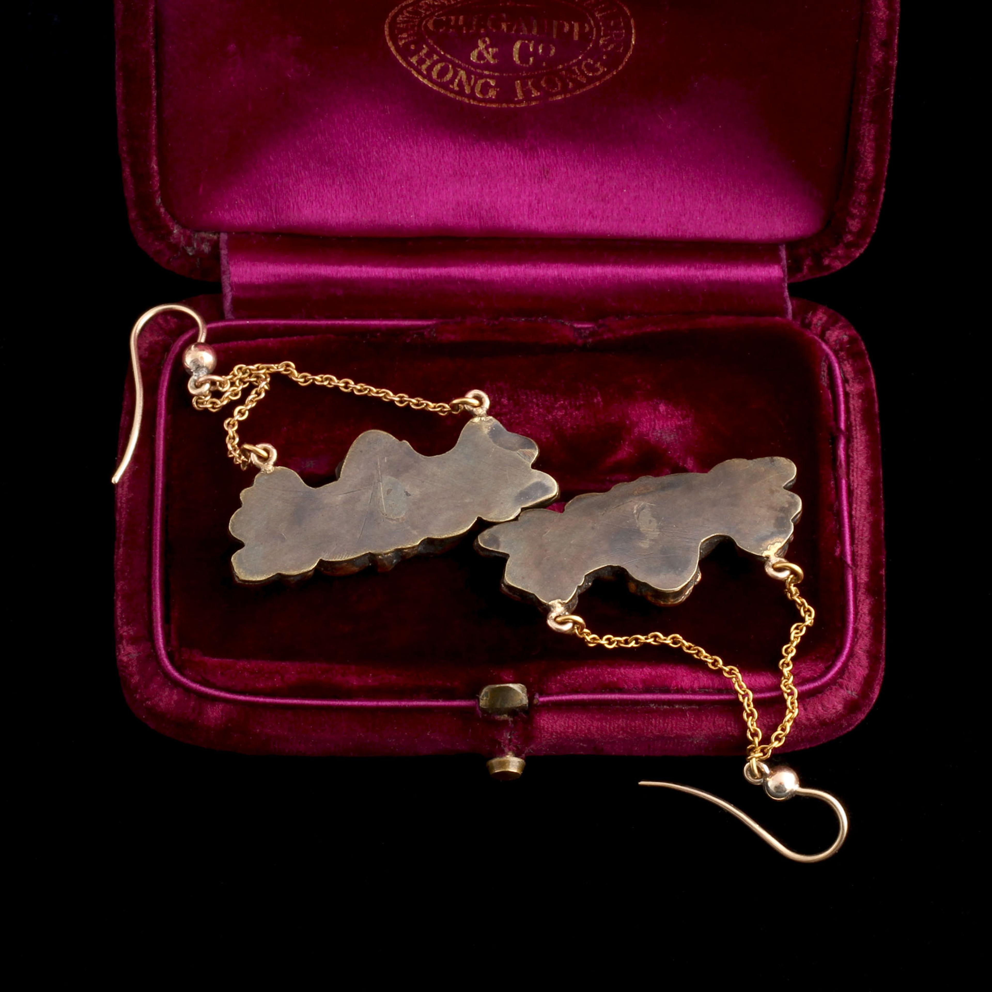 Jewelry from this period featured joyful designs like flowers, hearts, and birds, all which often had symbolic meaning. The queen’s betrothal ring was made in the shape of a snake, which stood for love, fidelity, and eternity. The exuberant tone shifted after Prince Albert passed away in 1861, marking the beginning of the Grand Period. Black jewelry became de rigeur as the Queen and her subjects entered “mourning,” which at the time represented not just an emotional state, as we conceive of it today, but a specific manner of conduct and dress. She wore the color black for the remainder of her life, and we see lots of black onyx, enamel, jet, and gutta percha in the jewelry from this time. Finally, during the late Victorian period, which transitioned along with a rapidly changing world into the “Aesthetic Movement”, there was a return to organic and whimsical motifs: serpents, crescent moons, animals, and Japonaisserie designed for the more liberated “Gibson Girl”. During the second half of the 19th century, America entered the global jewelry market, with Tiffany and Co. leading the way. Lapidaries continued to perfect their techniques, and the old European cut emerged toward the end of the Victorian period. The discovery of rich diamond mines in South Africa made the colorless stones more accessible than ever before.