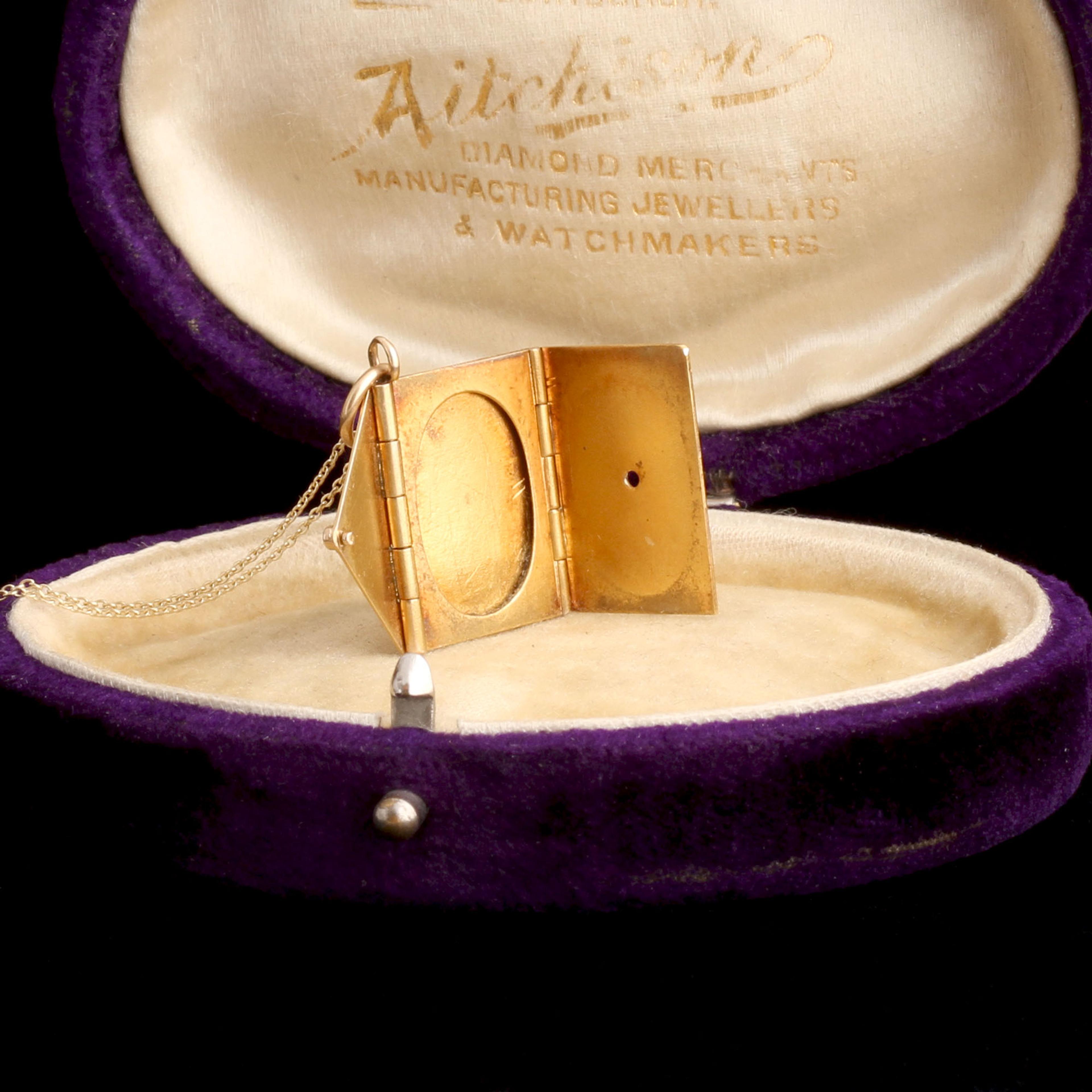 To get to see a special lil picture of your honey, you have to unfold this gold envelope-shaped locket. On the outside, a shamrock decorates it much like a wax seal would. A diamond sits at the center. It's a love letter to Irish sentimentality.