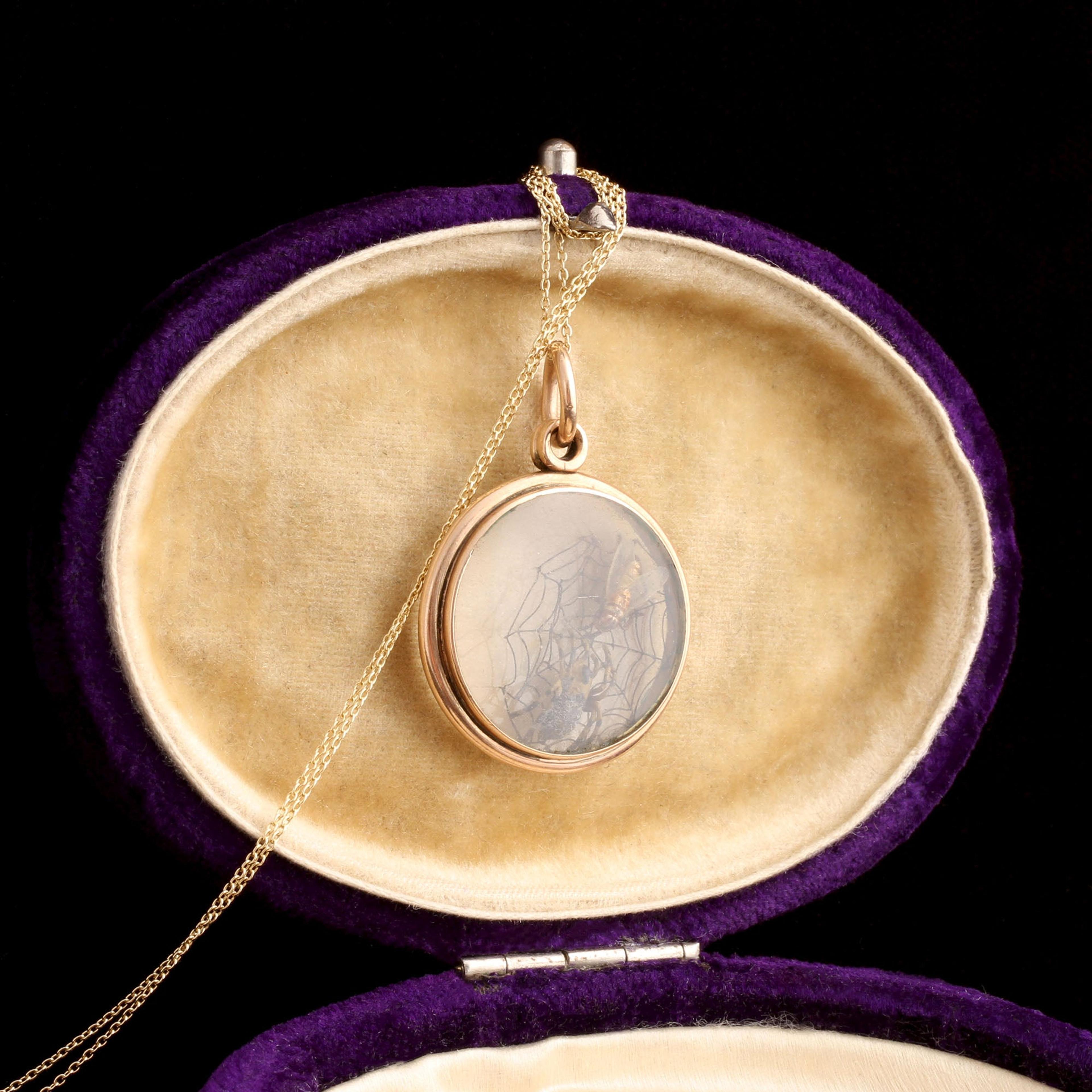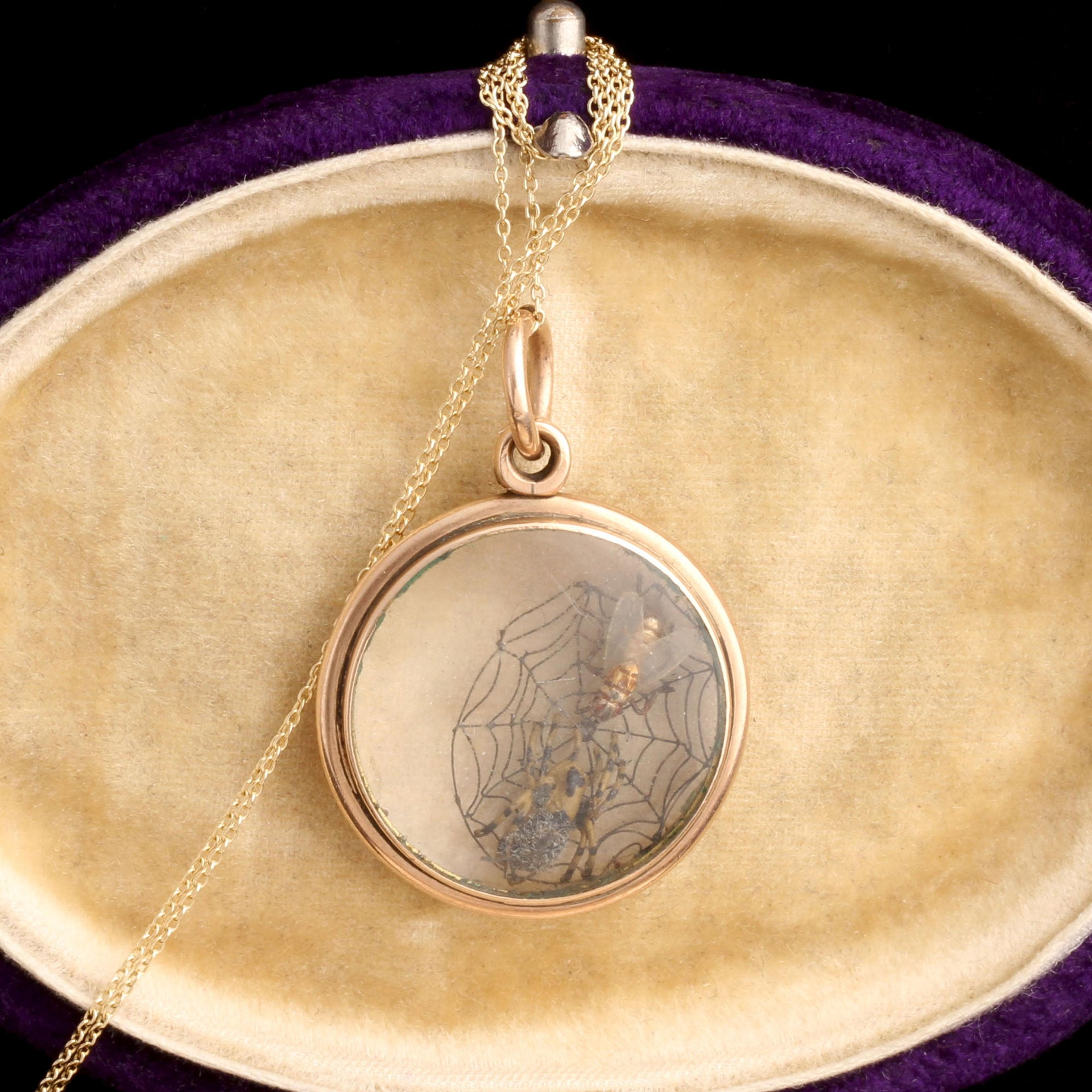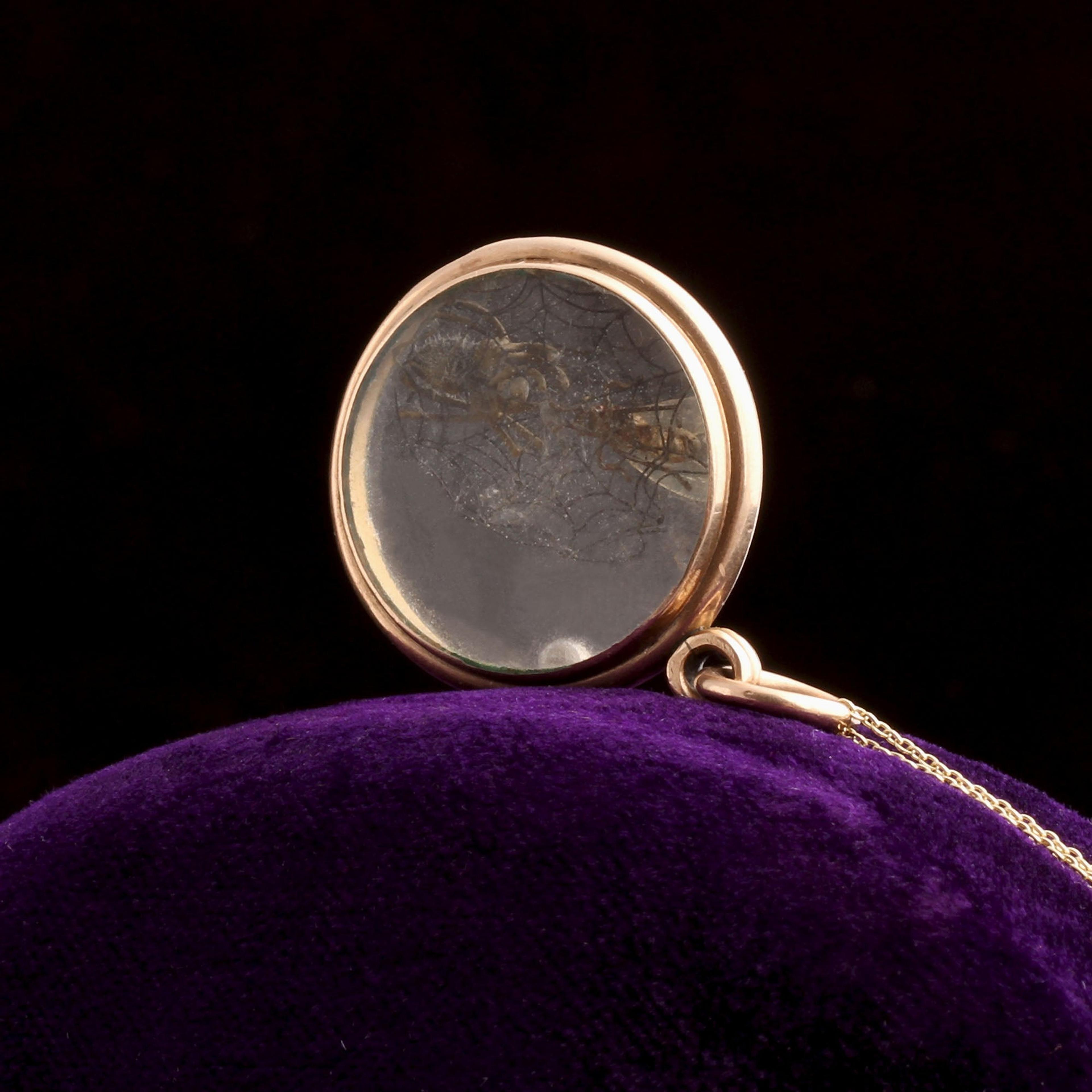 9k gold (marked), glass lenses, bronze & glass insects, new 14k gold chain