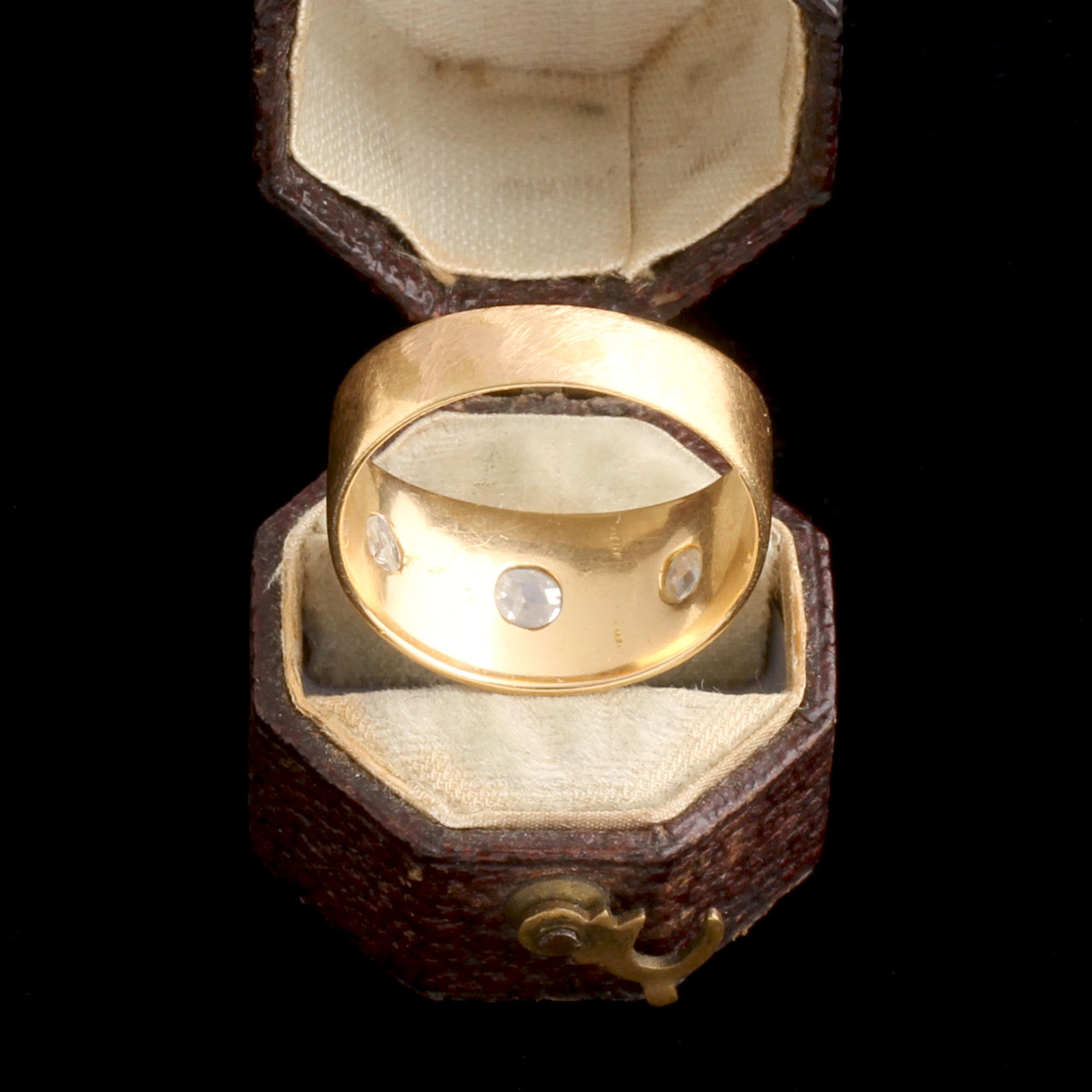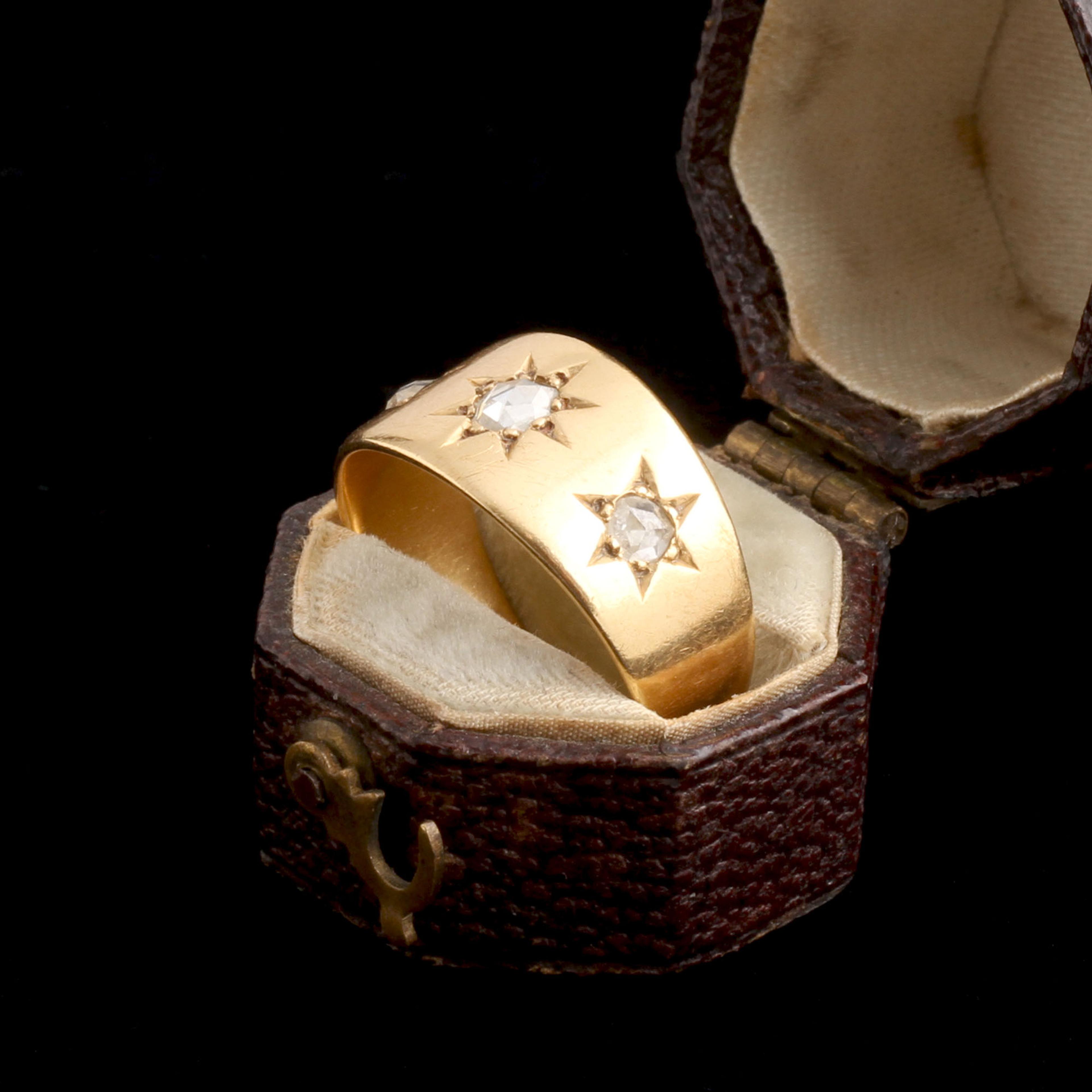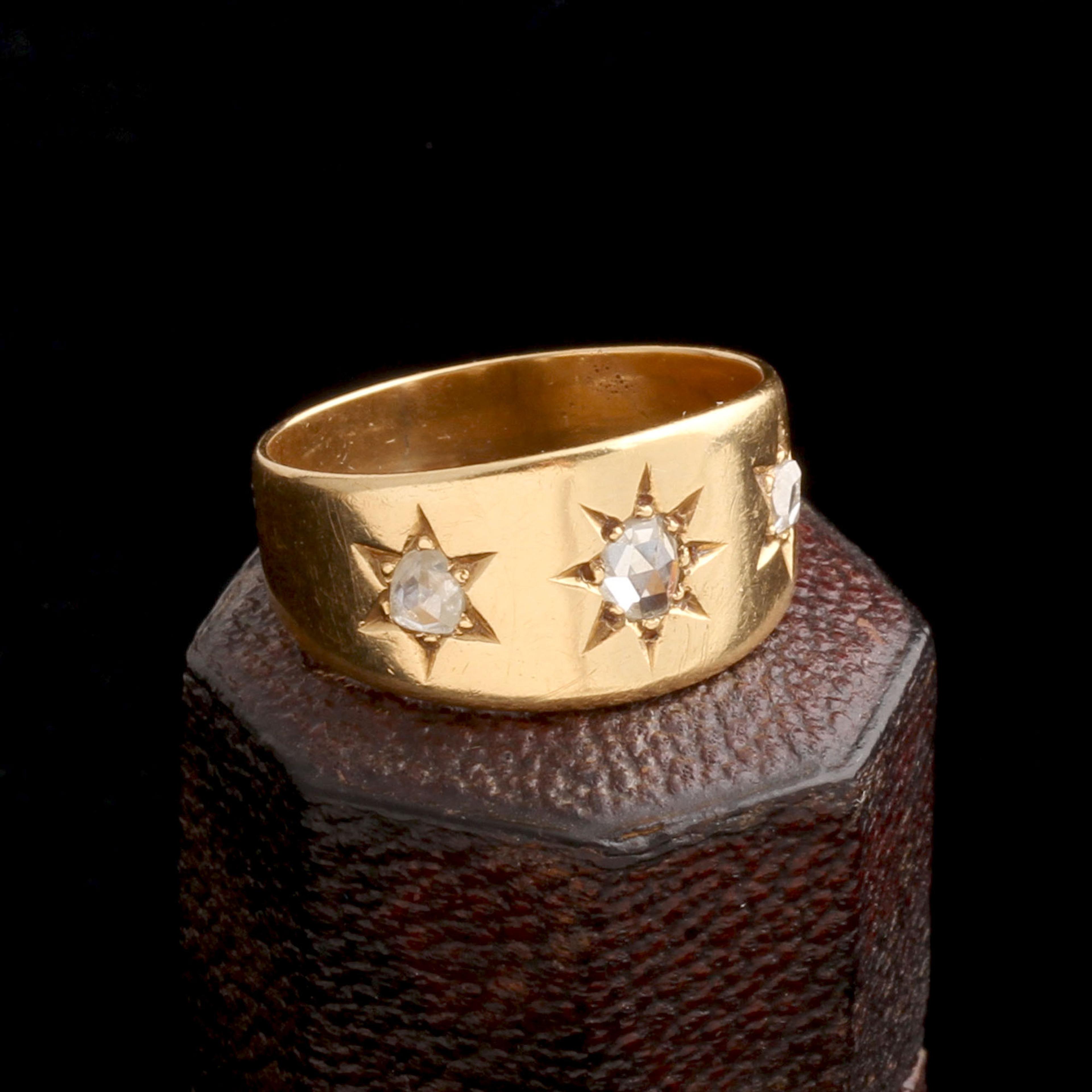 18k gold (tests), 3 rose cut diamonds (2 3mm, 1 3.5mm)
