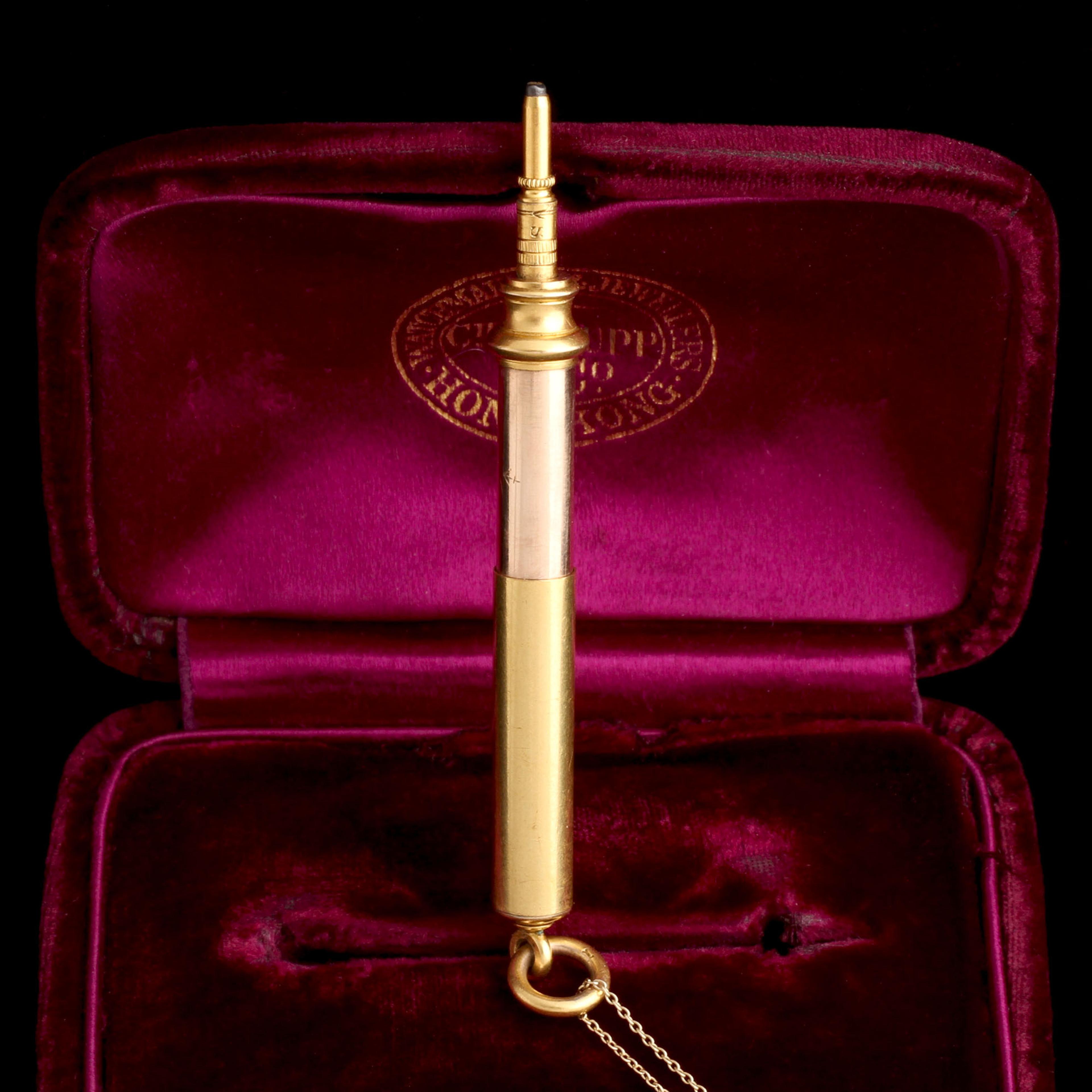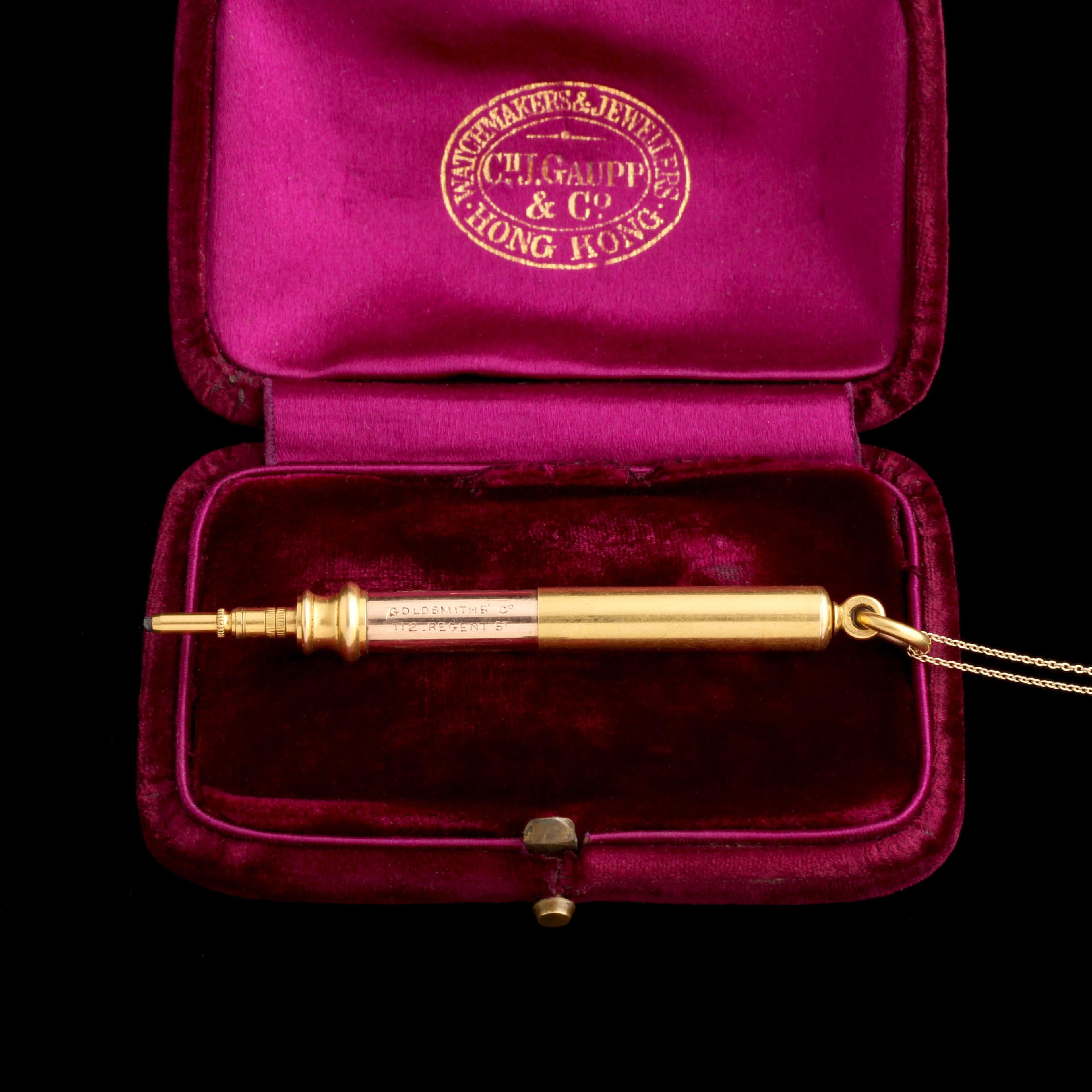 LINDSAY ALWAYS gives me some background info on a piece, and I copyedit a fancy description for this website product page. But once in a while, like here, Lindsay's words are all we need, no embellishment necessary. She says: The shaft is engraved with "Goldsmiths' Co 112 Regent St" and a little stylized anchor is etched on the other side. "VS" is engraved near the tip and the number 1 is engraved on the bale." Yes i know i just said shaft AND tip.