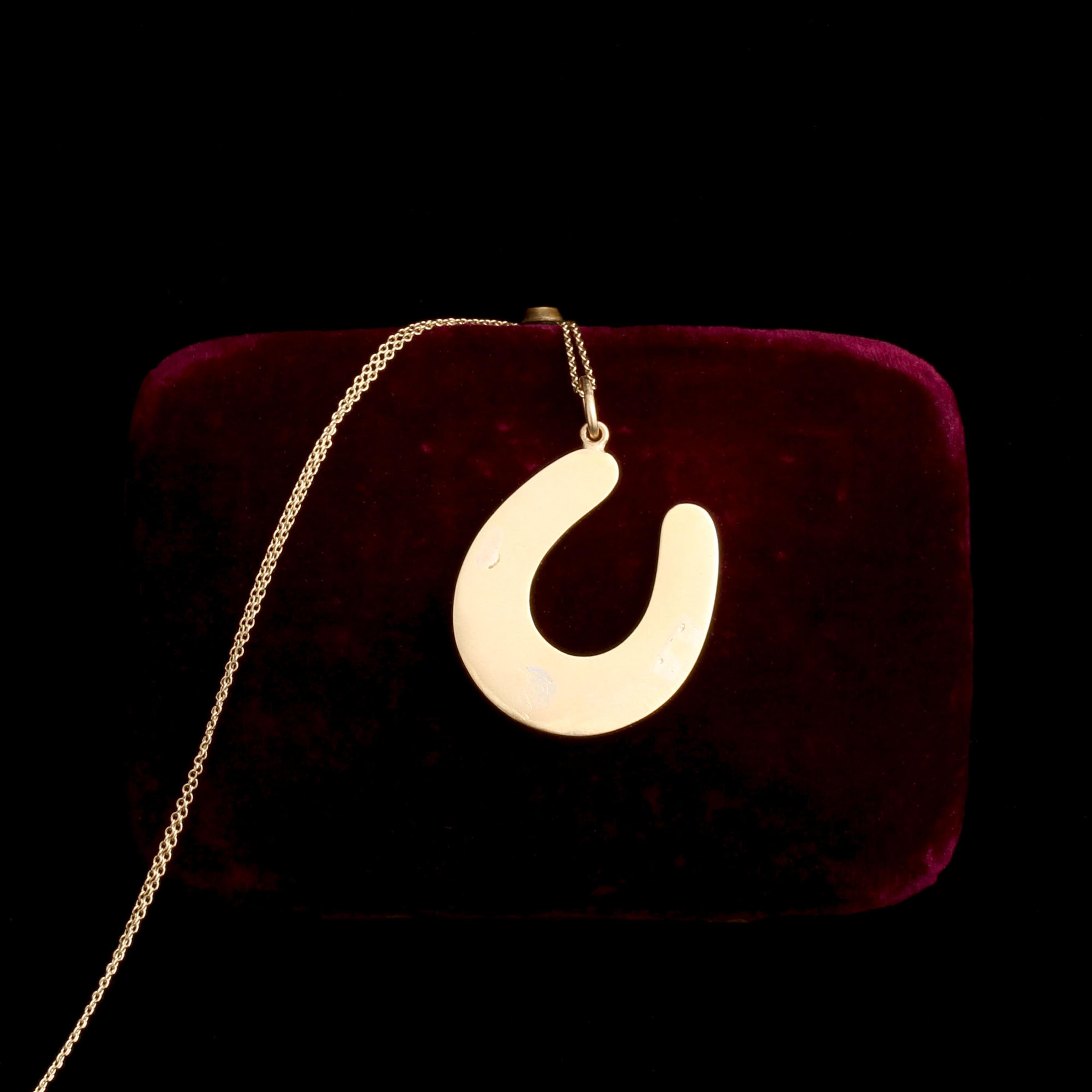 HUMANS HAVE CARRIED and worn lucky charms forever. Although the 19th and 20th centuries were thought to be ages of reason and science (and definitely not superstition) people still kept horseshoes close, just in case. Iron was believed to guard against trouble, so full-size shoes were nailed above doorways. The crescent shape also reached back to much older, pre-Christian lunar goddesses of protection. Here, natural pearls and smooth turquoise cabochons line up to elicit a creative, optimistic vibe.