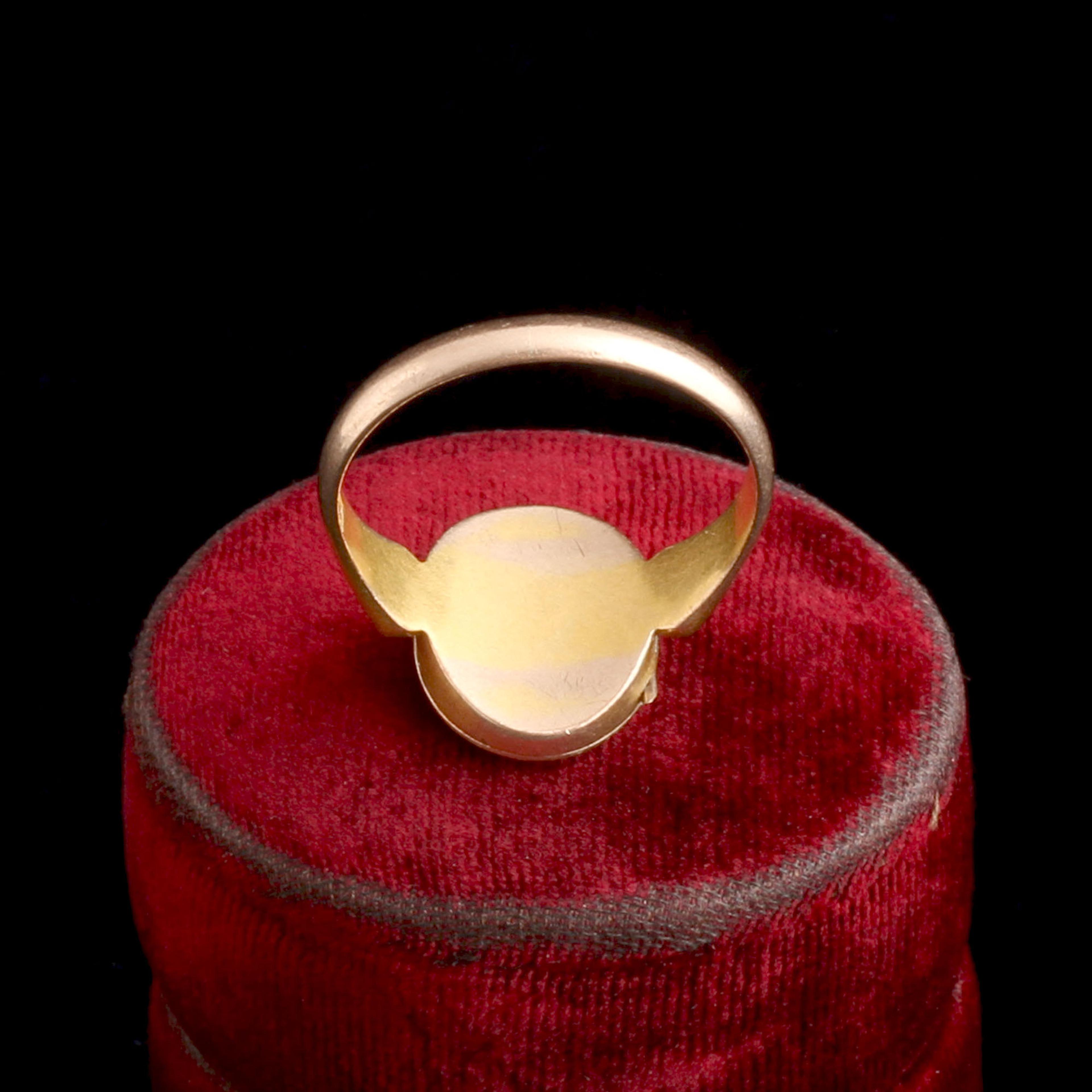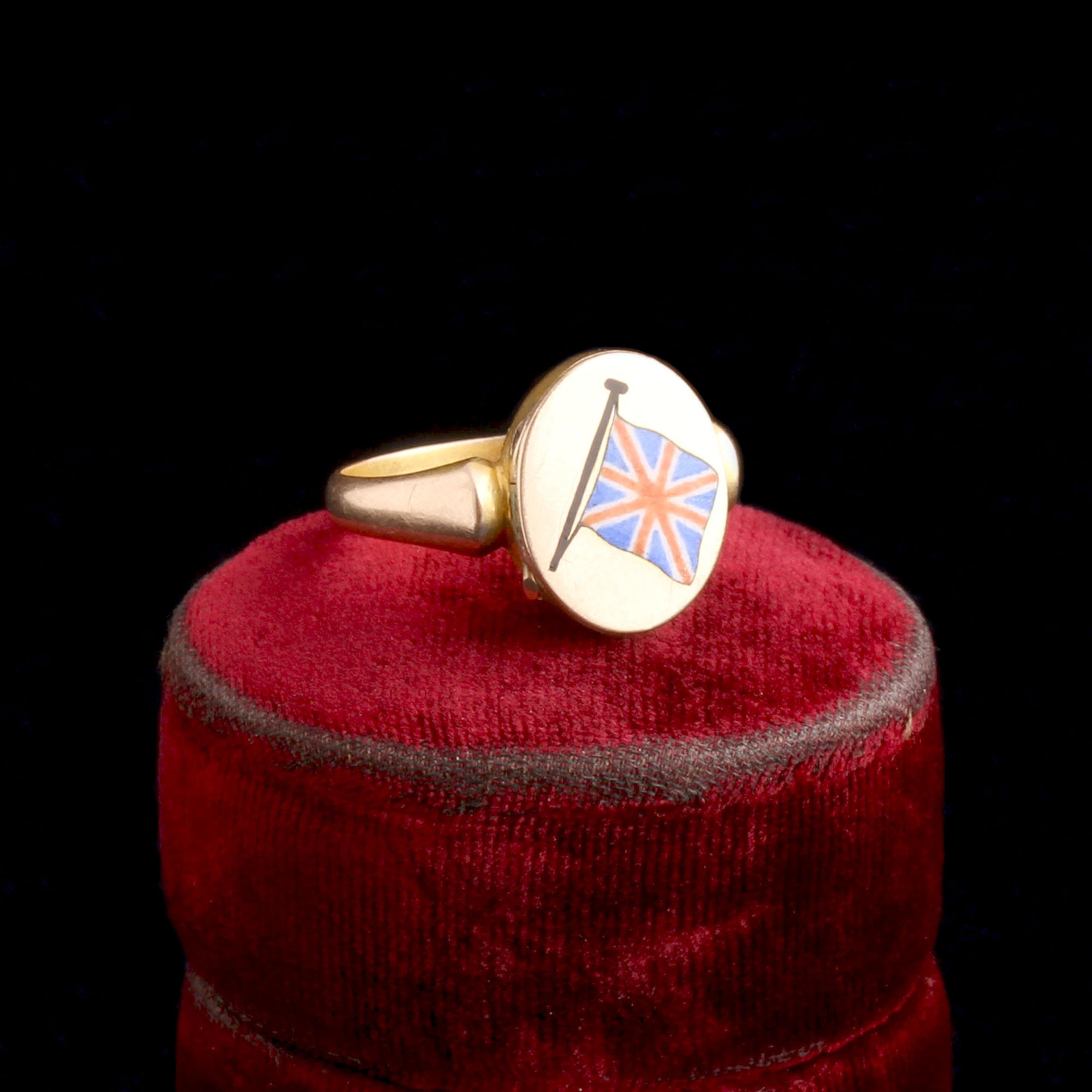 This diminutive signet ring features an enamel Union Jack rendered at a jaunty tilt. Not just the ring of a British patriot, it's also a sentimental keepsake - the face opens to reveal a tiny photo locket. Hallmarks date it to 1913, made just before the outbreak of the first world war.